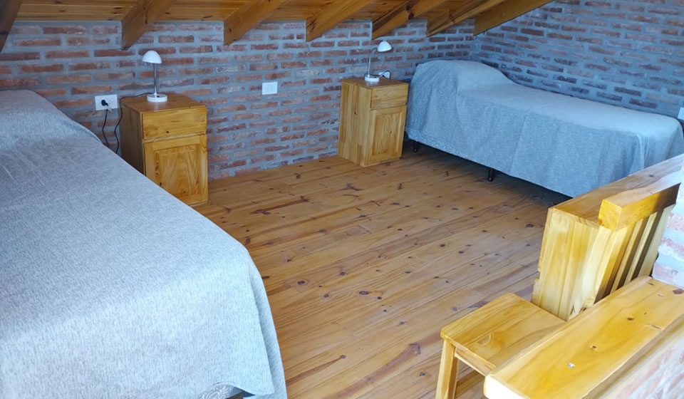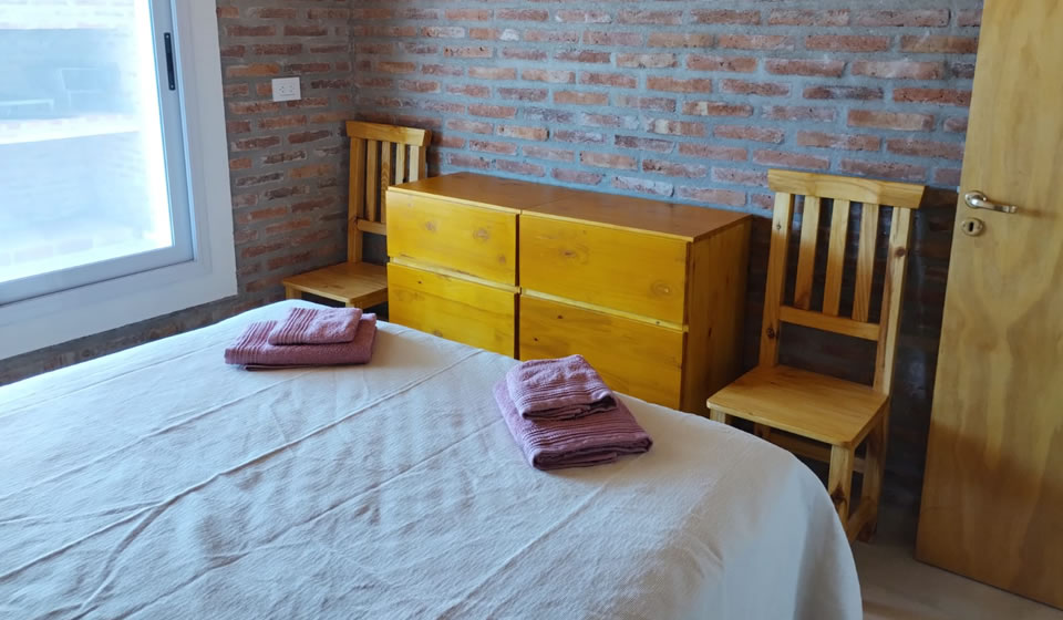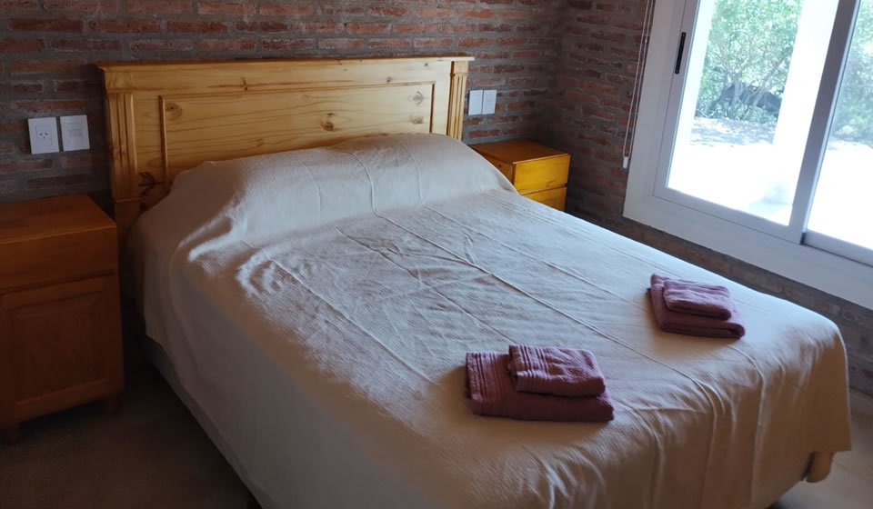 Dos dormitorios con sommiers, uno en planta baja con cama matrimonial y otro en planta alta con dos camas individuales. ropa de cama, sabanas de percal de 180 hilos, frazadas, cubrecamas, toallas y toallones.
